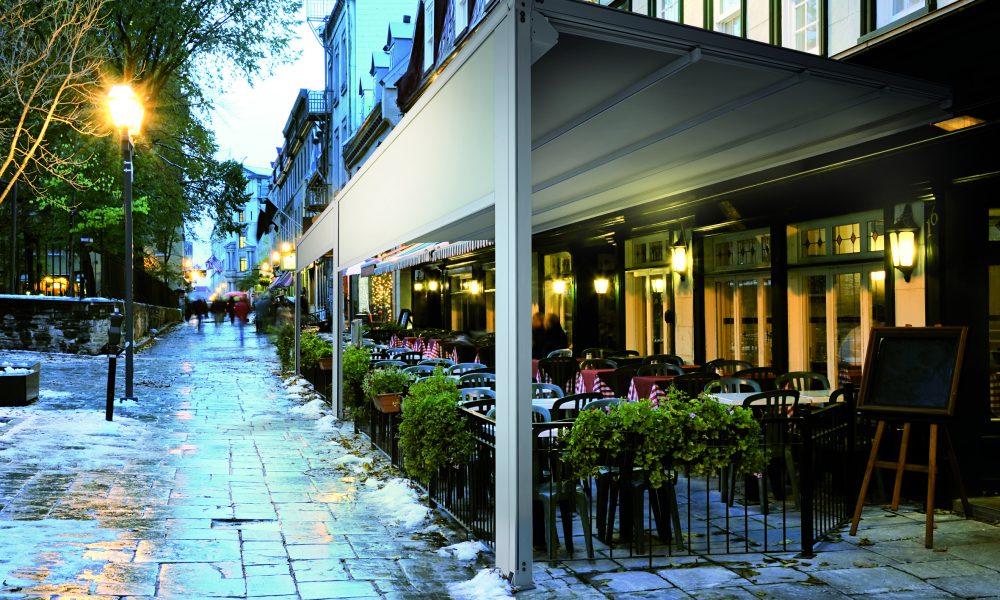 Puedes ponerlo en la fachada o, si la terraza está aislada del establecimiento, se puede colocar una pérgola de lona, cristal o bioclimática que puedes abrir o cerrar en función de las necesidades.